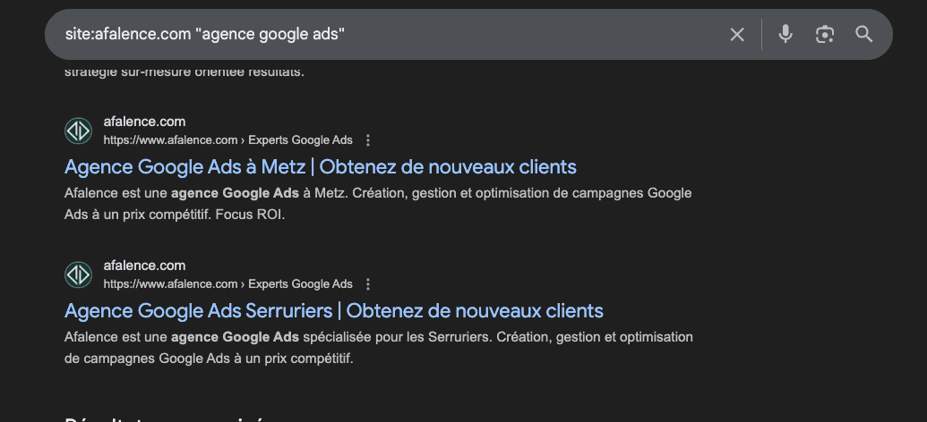- Viser tous les mots-clés "Agence Google Ads + Ville"