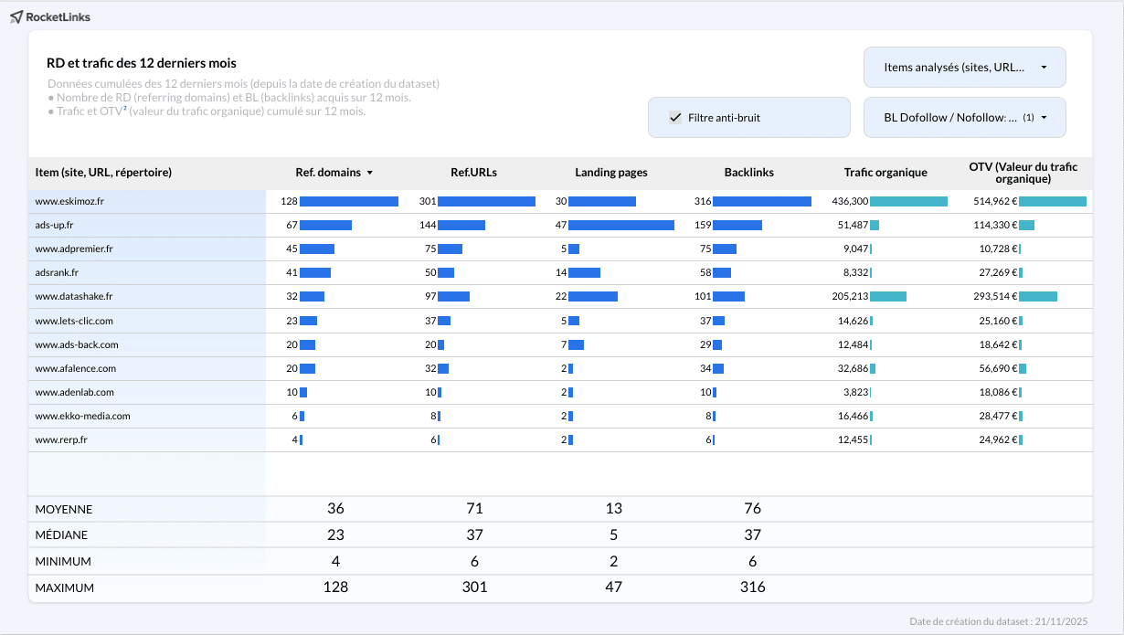 Après 7 mois de travail, on va analyser la stratégie de netlinking que j'ai mise en place à l'aide du Benchmark RocketLinks.