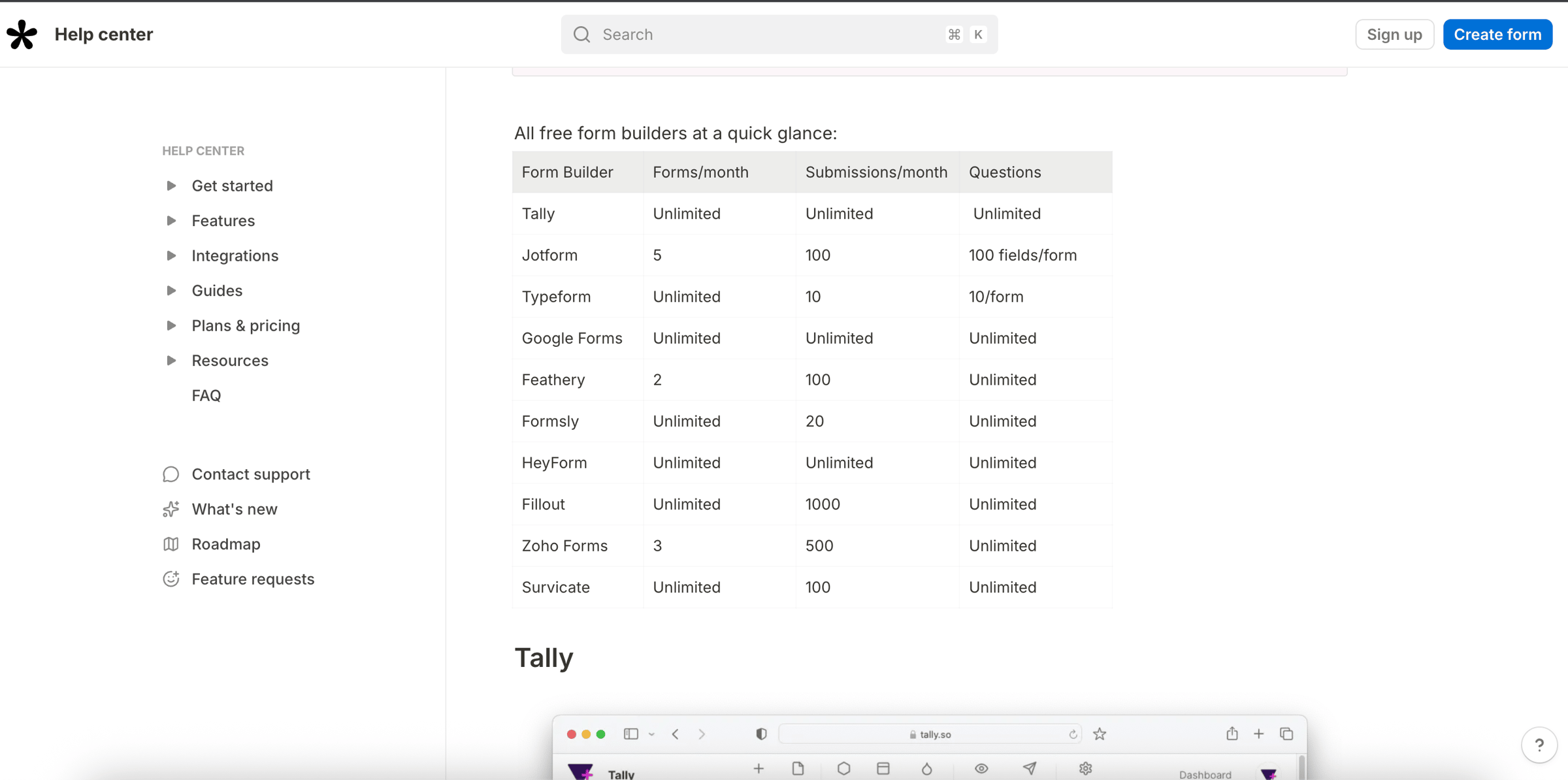 - "Which free form creator offers the best integration with popular productivity tools?"